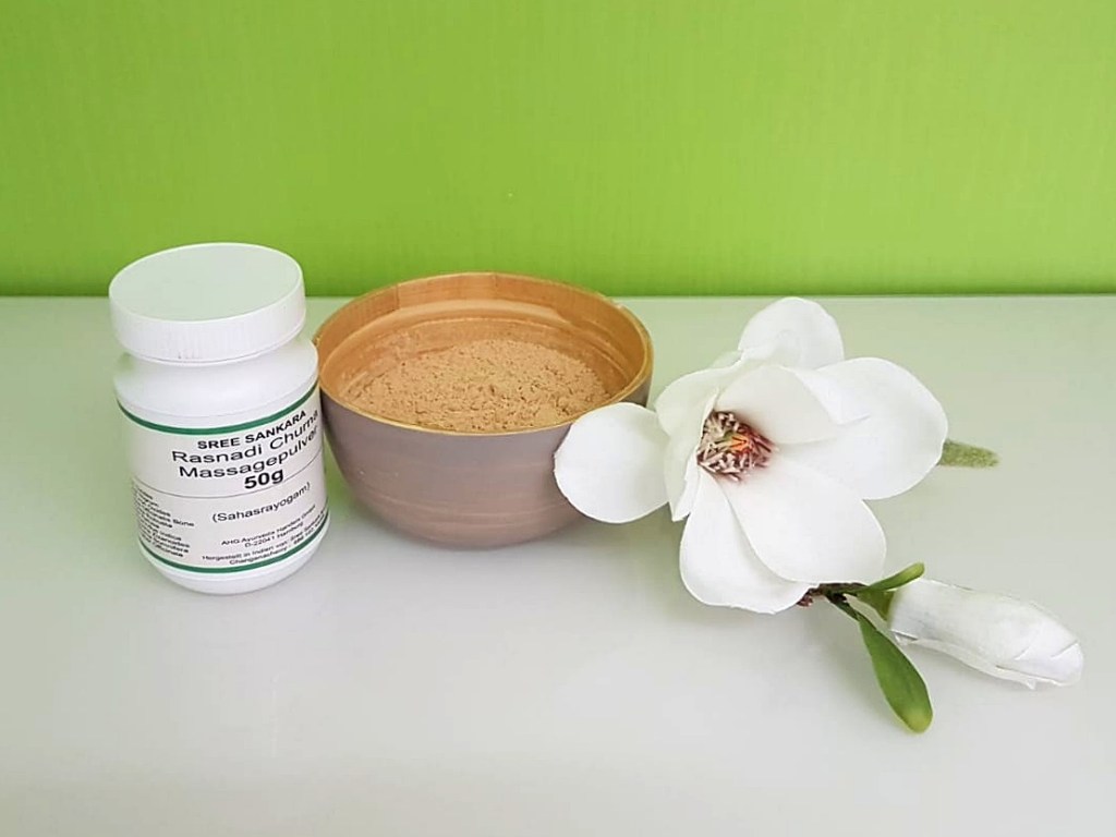 Die Ayurvedische Pulvermassage ist eine aktivierende, anregende Massage mit fein gemahlenen Pflanzenpulvern. Sie peelt schonend die Haut und verjüngt das Hautbild.